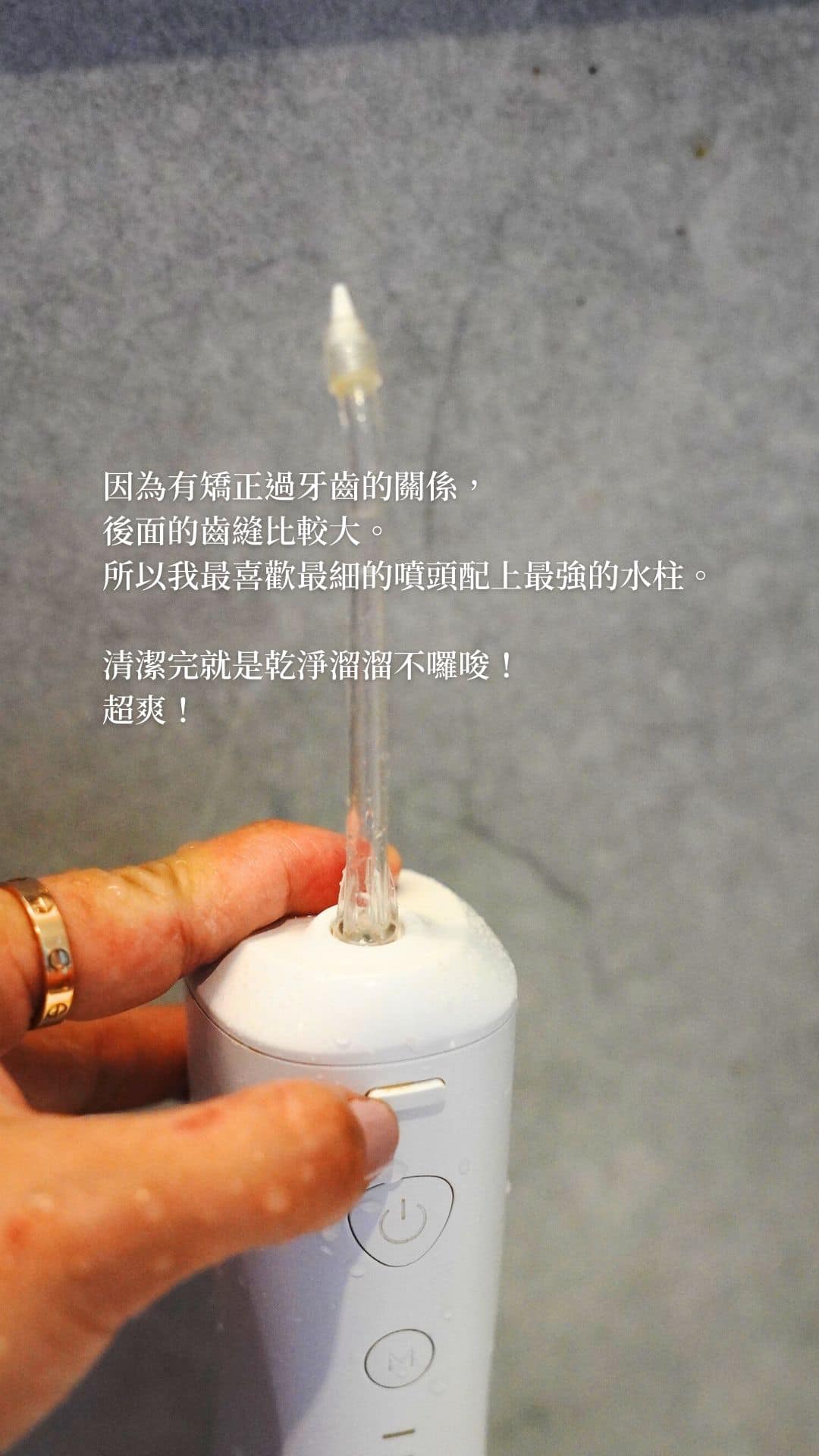 不知道是不是因為曾經矯正過牙齒(拔過八顆牙)的關係,所以矯正完以後,我非常依賴牙線棒和牙線(後方真的齒縫太容易堆積食物垢)熱愛洗牙的我,自從用了沖牙機以後,真的超喜歡沖完乾淨溜溜的感覺。