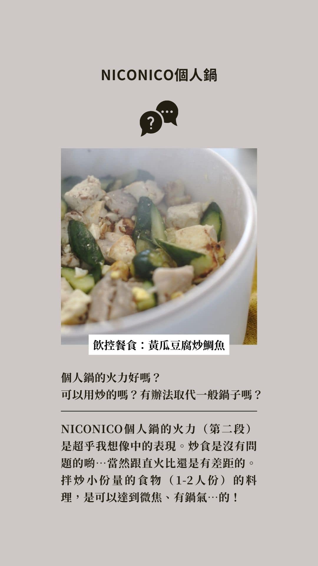沒想到NICONICO個人鍋卻完全顛覆了我的想像。不僅能煮湯類食物;受熱快、溫度夠高的特性,也能直接當作簡易的炒鍋使用。