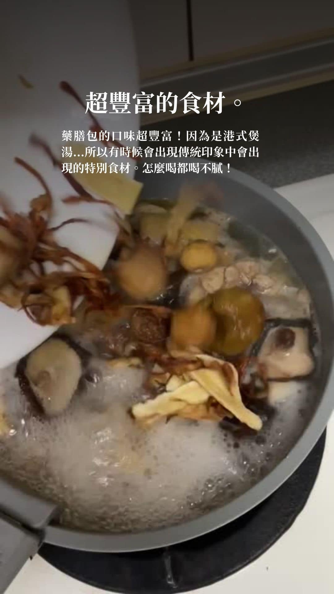 只需要準備自己想食的肉品與「藥膳包」裡配好好的中藥材洗淨丟進去,就能完成一鍋好湯!堪稱快狠準的備料過程,真的讓忙碌的媽媽覺得很感心;家裡如果有茹素的長輩,也可以使用「藥膳包」加上根莖蔬菜類與素料(ex.我最愛的素甲魚)