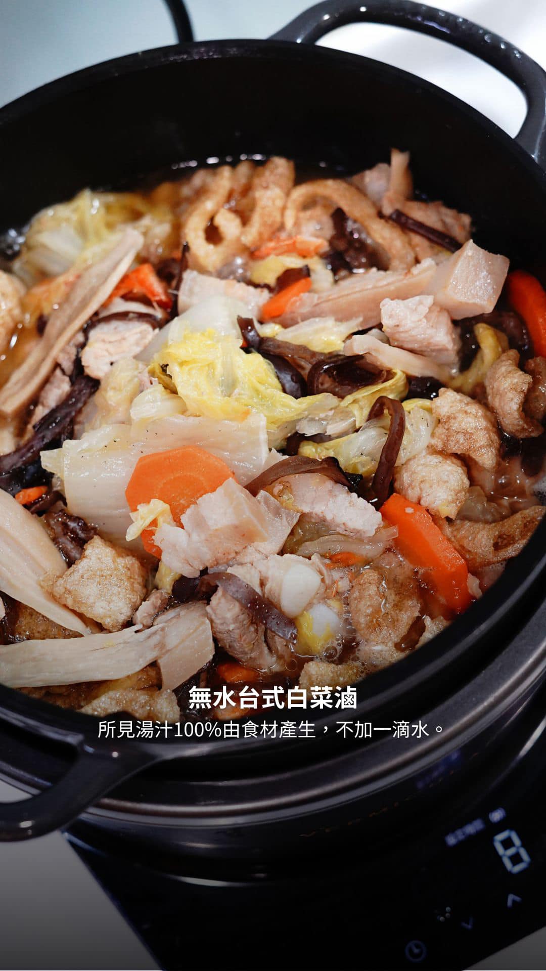 燉煮類的食物(台式滷肉、咖喱、滷白菜、無水番茄牛肉…等)如果食材本身含水量已足夠(ex:馬鈴薯/白菜/番茄)料理過程中添加的水量可以減少(甚至不加)以外。