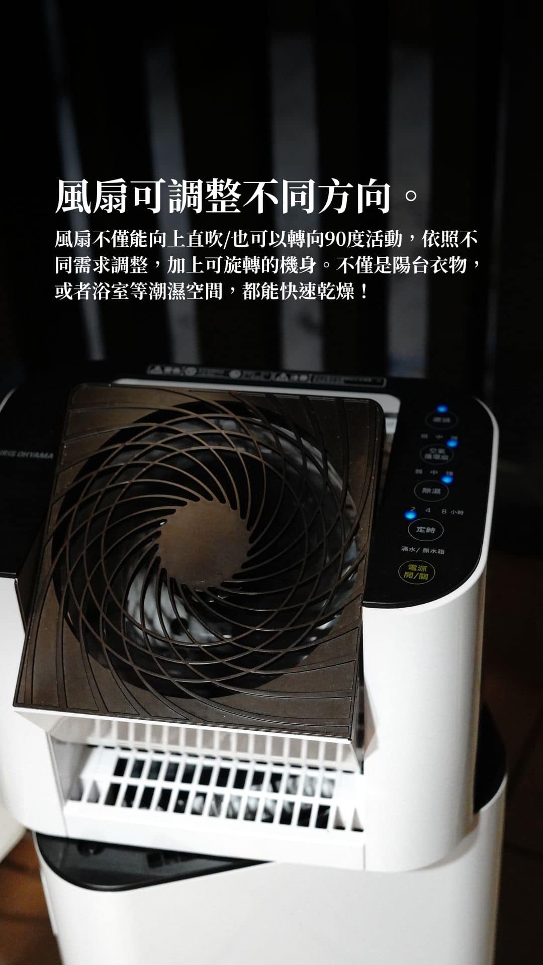 衣服過於密集的時候,時間的確需要比較久(我通常都直接8小時開下去)因為可調整的風扇和旋轉的弧度均有其限制,所以過一段時間會需要調整一下方向。