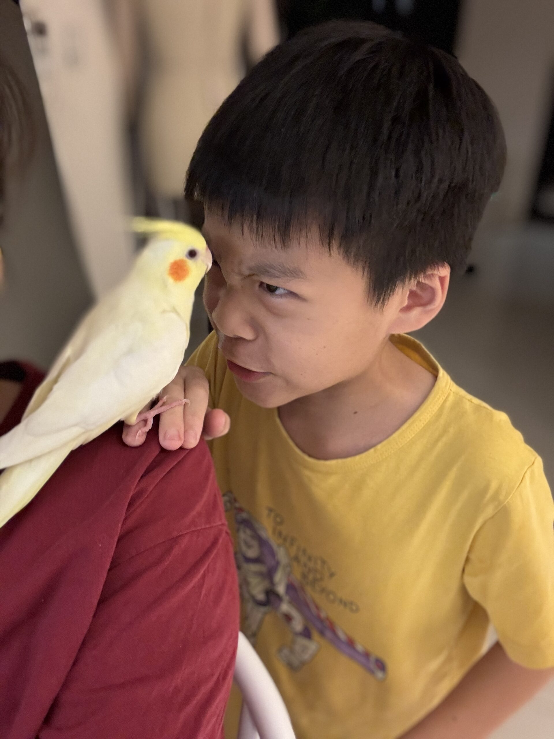 從啾啾半夜身體不太對勁、第二天我送牠去急診急救宣告不治;下課後再帶著孩子去醫院接牠回家花葬;愷與我一起親手將啾啾埋在桂花樹苗下。