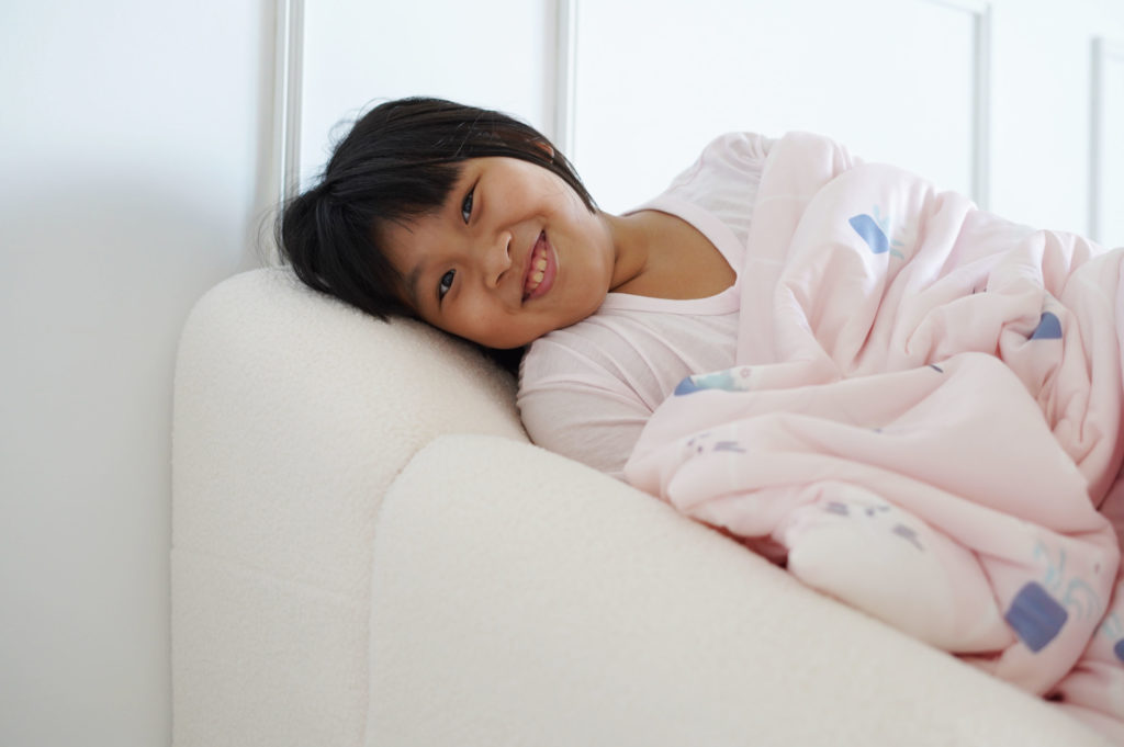 這次收到邀約的時候,我禮貌簡單說明了原因後(沒有很派),對方告訴我:「這是物理性的涼感原紗,真的室溫下都會冰涼,你可以給孩子試試看!」想著家裡連被單都嫌棄的兩位,既然有廠商願意冒險嘗試他們靠杯的誠實豆沙包,不如就來吧!