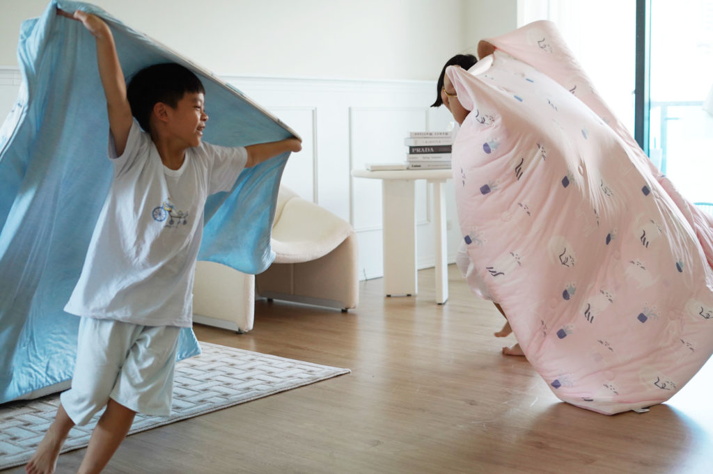所以每年的夏天,媽媽的棉被沒有換季的問題,但兩小就是剩被單。而所謂的被單不是那種薄被設計的兩用被單,是真真切切只有純棉布兩片車起來的那種被單。