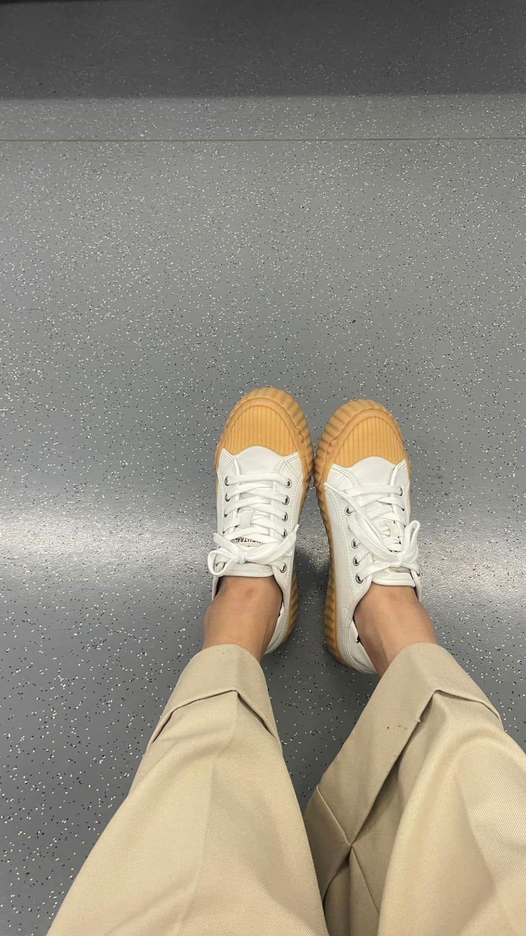 這也是曾經總監推薦厚底小白鞋當作今年主要穿搭小白鞋的原因。因為即便穿著單薄的棉麻洋裝,配上厚底小白鞋就能整體質感加10分!