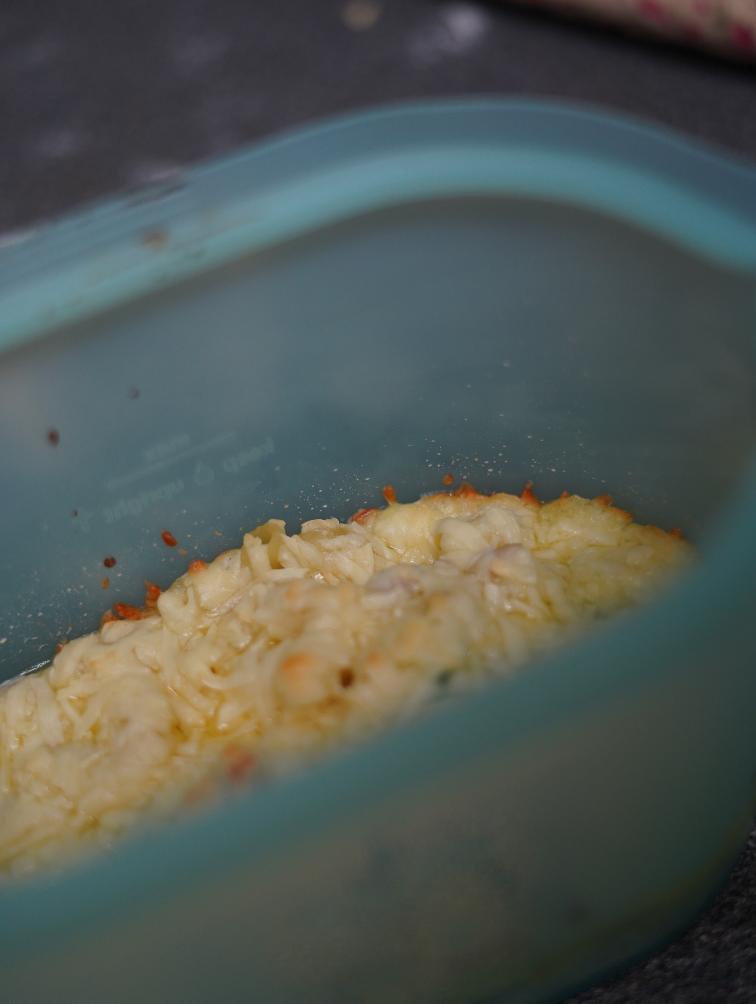 因為我手邊的通心麵是已經清燙過的,所以就直接將通心麵加入白醬混合在一起即可起鍋。姊姊喜歡吃焗烤,就另外加上起司放進烤箱烤15-20分鐘左右,最後五分鐘我會將溫度調高,起司的邊緣才會有金黃色微焦的香氣。