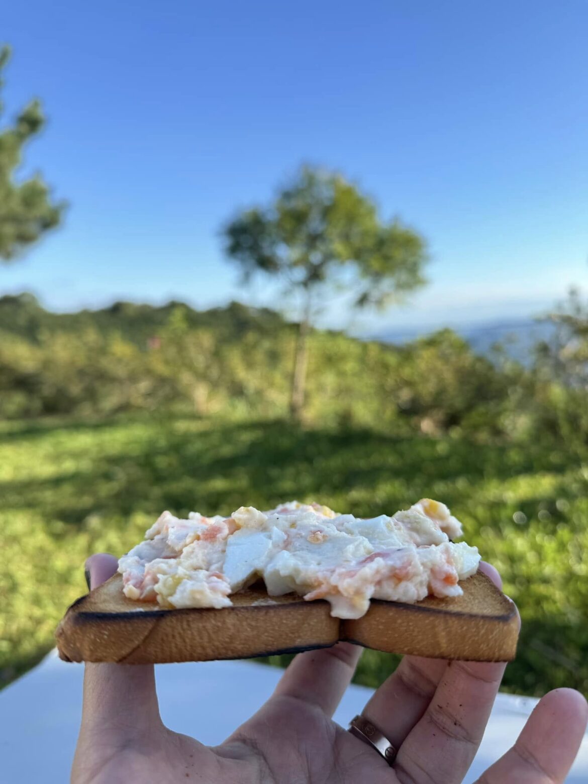 這週露營的營區很美,因為尿急而早起的我,有幸見到這絕美的日出也順道在一片晨露中曬曬太陽….挺好的。