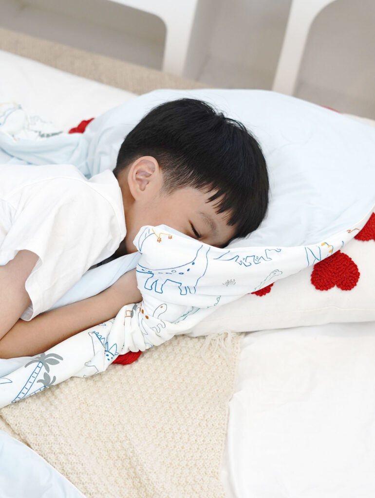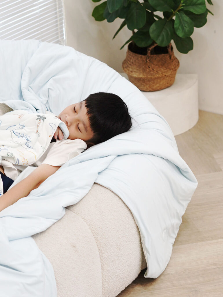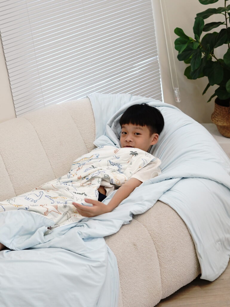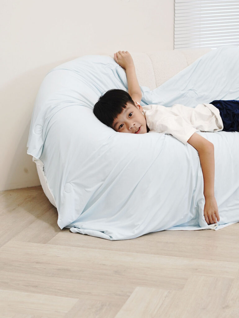 我們家兩個孩子很喜歡在夏天「裹」著涼被在身上;冬天裡,愷愷也喜歡在帶著涼被摸著睡,絲滑的感受是姐弟的助眠摸摸。睡到半夜容易身體燥熱而睡不安穩的孩子,自從使用涼被以後。我常常在睡前探房時,會看著孩子裹著涼涼被包著睡覺….