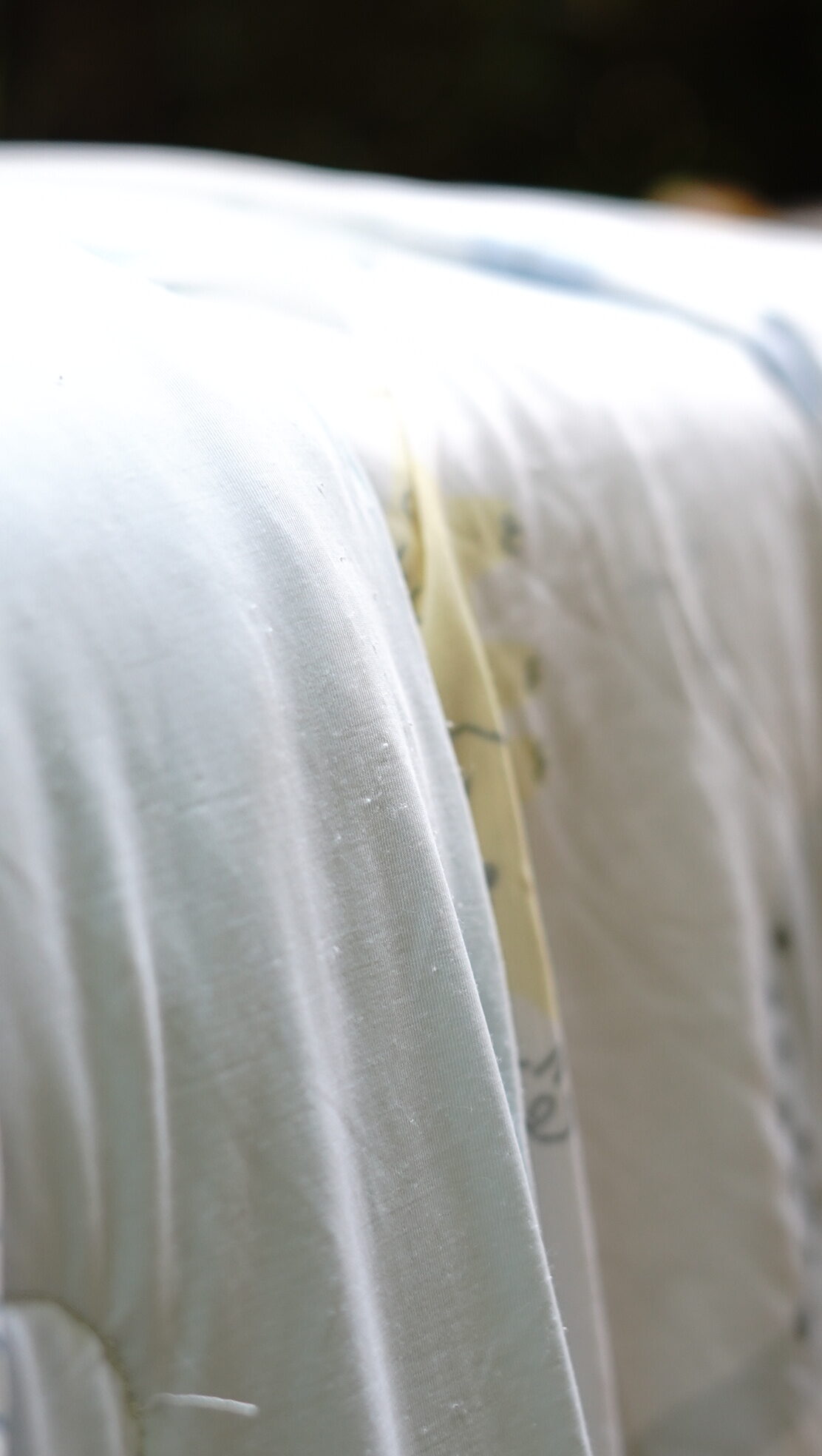 孩子流鼻血在被子上,只要輕輕搓洗就可以快速地地將血漬去除;若是比較小的幼童還會尿床,也可以緊急丟到洗衣機裡清洗。正常的天氣來說,涼被曬乾的速度同等於衣服吧!(因為超透氣)