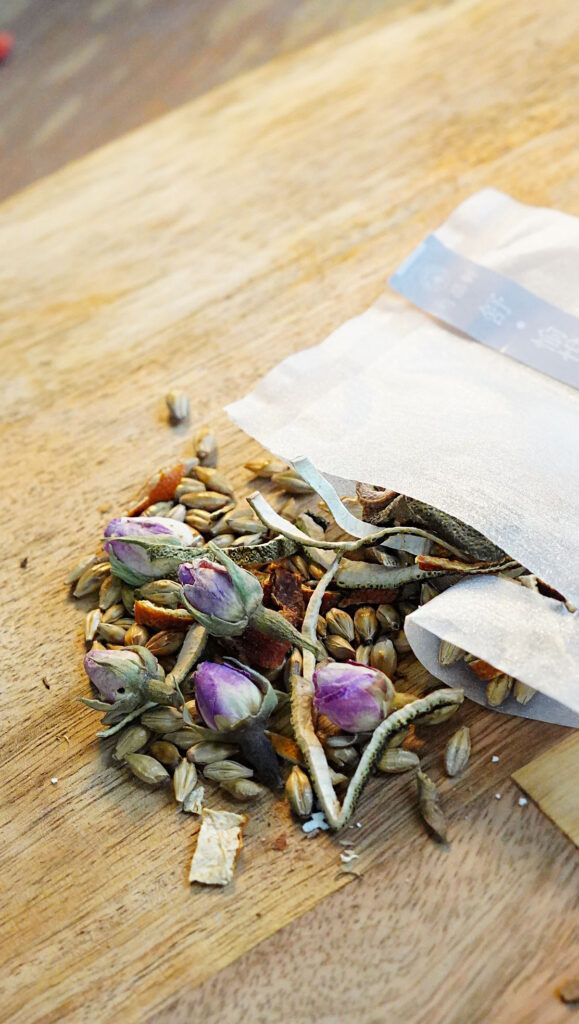 芍品軒的「深層養身茶」直接採用「原型」食材的乾料,配合節氣與不同的體況需求調配;直接購買組合,照著0 ➡︎ 1 ➡︎ 2的順序喝完一季。