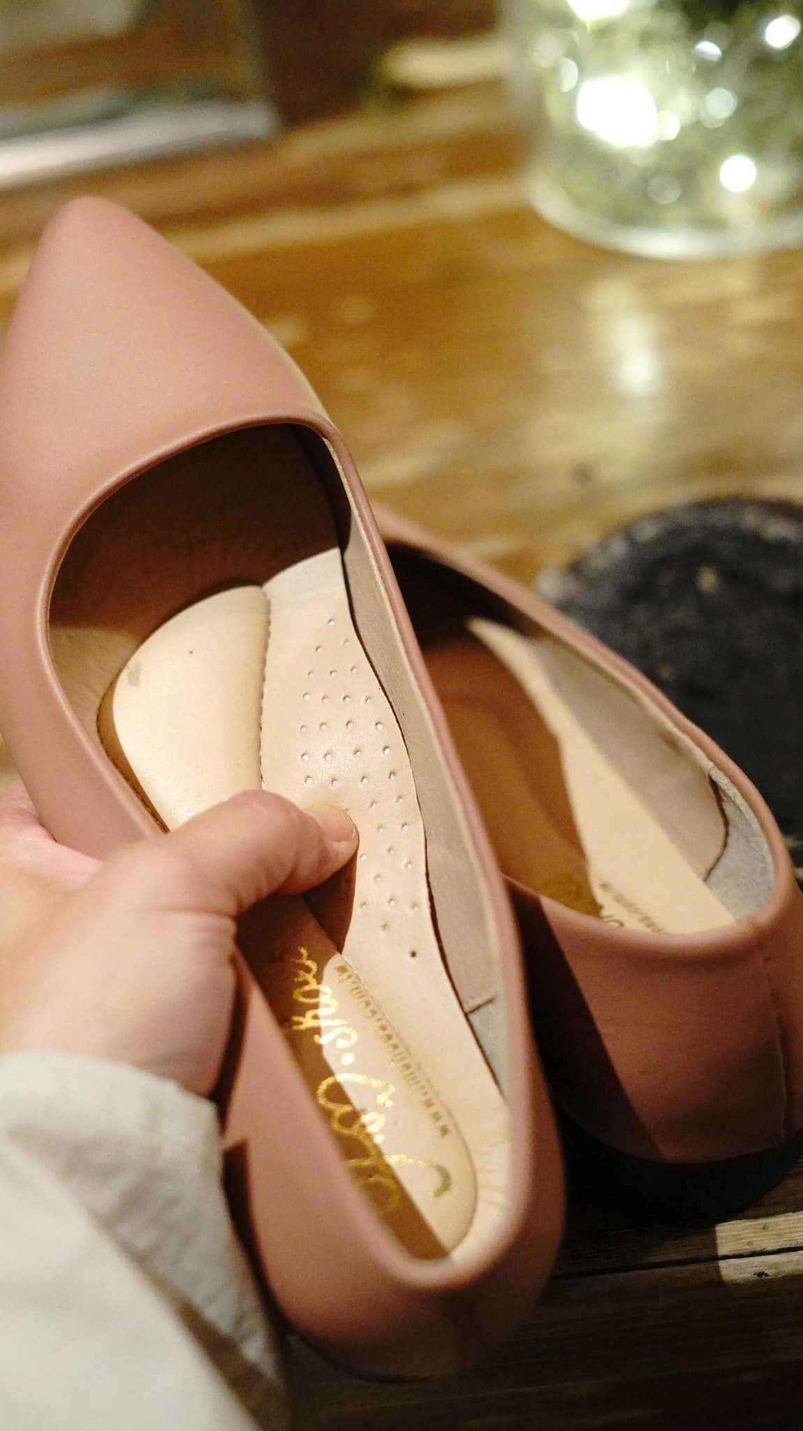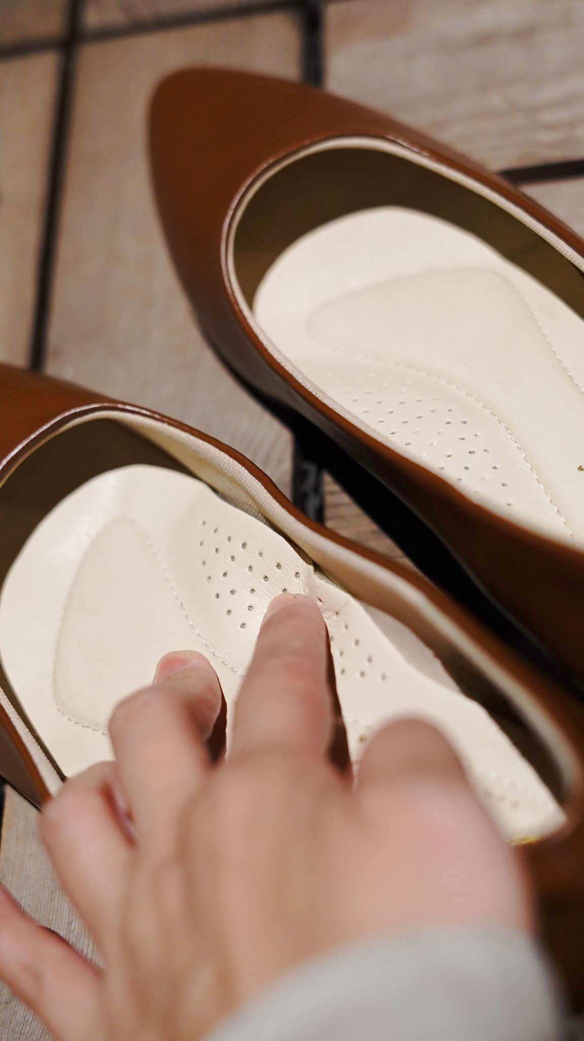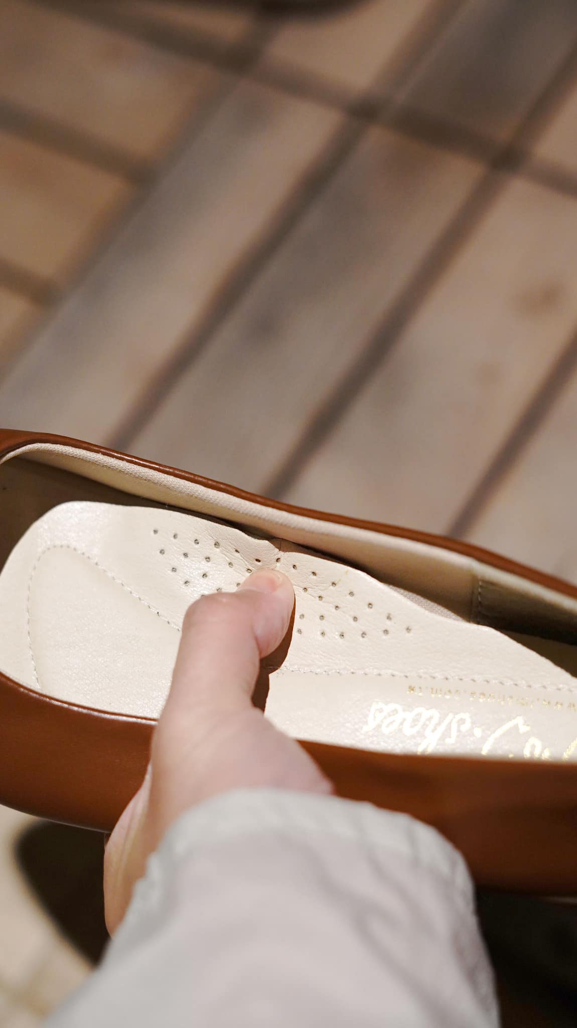 霧面皮質的鞋面搭配的是漆皮的鞋跟,雖說僅是千元出頭的平價鞋款,但楦頭和細節的做工與質感,完全不輸巨星平常接觸的高端品牌;鞋墊中心立體的軟墊設計,更是支撐了足弓,讓擁有足弓塌陷困擾的巨星不會因為久走不適而出現任何不悅而表演失常。